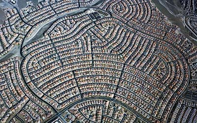 Pero, sobre todo, se trataba del modo de vida USA que nos “vendían” machaconamente como el ideal en el cine, en la prensa y, luego, en la televisión. Seamos sinceros, en un sistema ideal con energía barata e ilimitada ¿quién no prefiere, como decía Castelao, tener “una casa con cuatro fachadas”? Una casa con un terrenito en el que cultivar tomates o rosales, con espacio suficiente para no sentirse agobiado por los vecinos. Y si para ir al trabajo te acomodas en el coche, pones el aire acondicionado, conduces veinte minutos por la autopista y aparcas tranquilamente en el garaje donde tienes tu plaza reservada, llegarás al trabajo relajado y de buen humor. Luego, si por la tarde te vas al club social de la urbanización, haces unos largos en la piscina y te tomas un cubata charlando tranquilamente con los amigos, te sentirás burguesamente feliz. Claro, necesitamos autopistas de seis carriles para llegar al hospital o al Círculo de Bellas Artes en menos de hora y media. Si fuéramos poquitos, si la energía fuera barata e ilimitada ¿no es mejor esto que vivir en un apartamento rodeados de familias, de ruidos, de agobios, sin más relación con la naturaleza que un geranio en un maceta y un jilguero en una jaula? No, no creo que sea culpa del modo de vida americano, ni una imposición de los medios urbanos de comunicación. Es, sencillamente, que el sprawl como forma de ocupación extensiva del territorio, no es sólo bello, sino también lo más cercano al paraíso perdido. Pienso que hay muchas razones para mantener esta afirmación pero, por ejemplo, podríamos empezar por el tema de las densidades.
